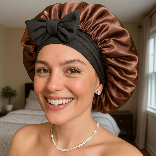 Luxury Double-Layered Bonnet – Silky Night Protection for Hair (Mocha Noir)