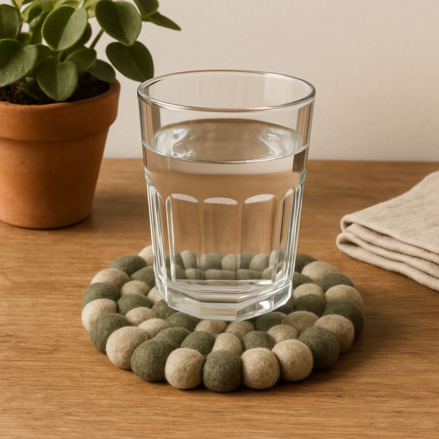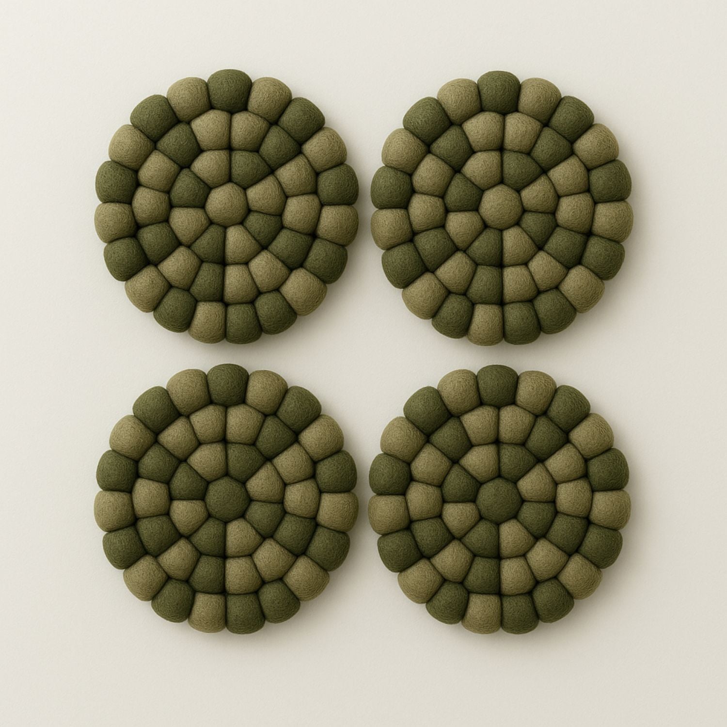 Handcrafted Felt Ball Trivet & Coaster- Olive Green