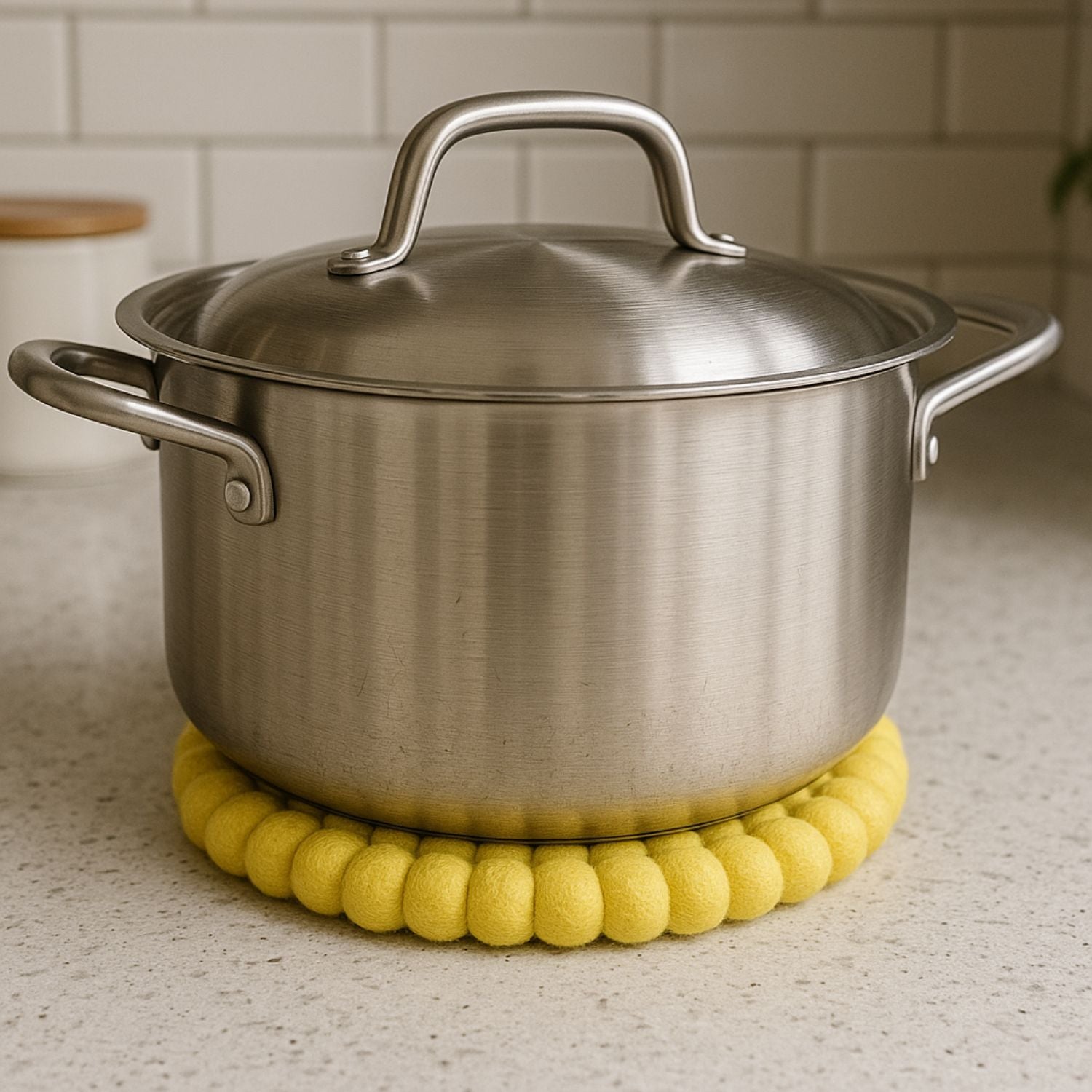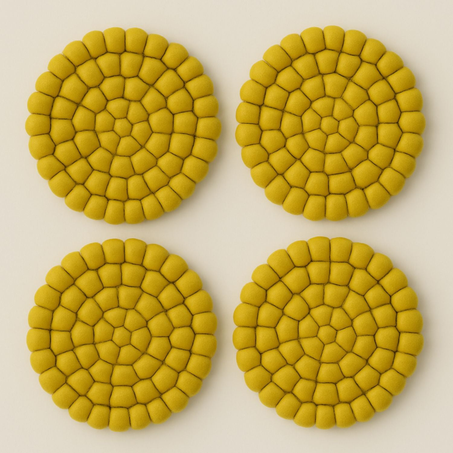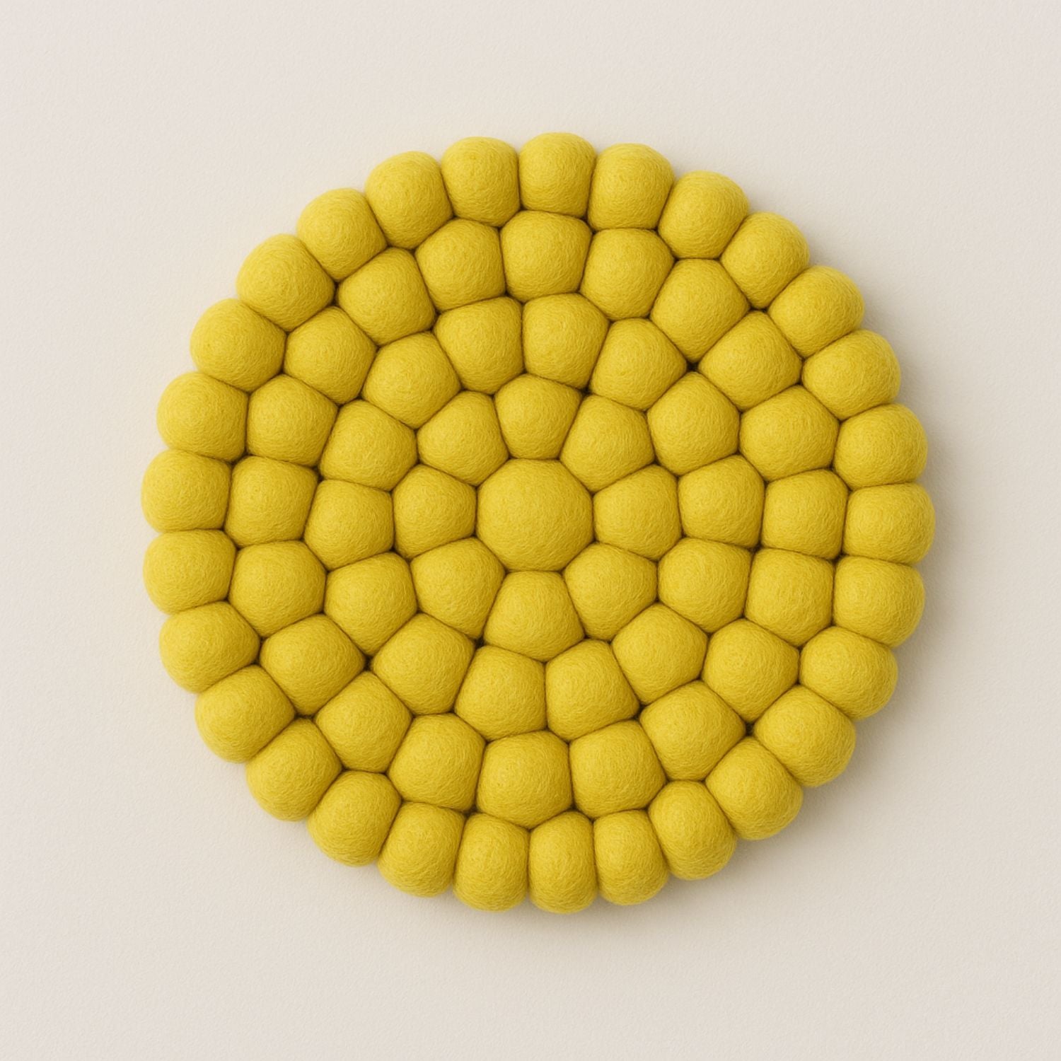 Handcrafted Felt Ball Trivet & Coaster- Yellow